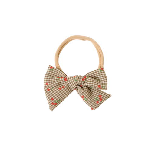 View full detailsCherry Gingham Baby Bow Headband in Cocoa