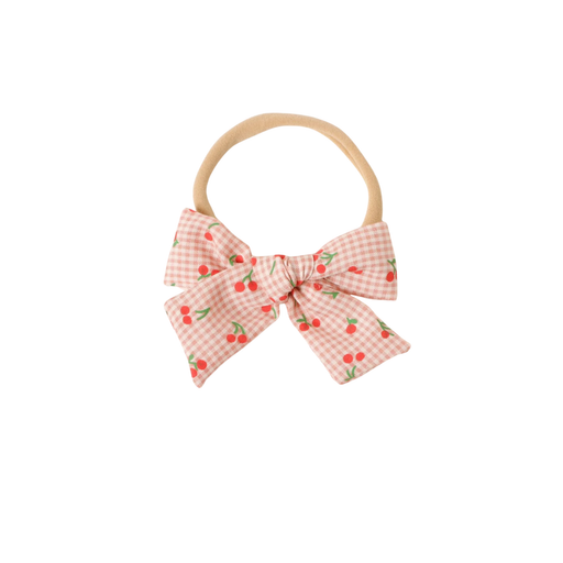 View full detailsCherry Gingham Baby Bow Headband in Blush Pink