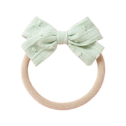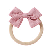 Crafted with care, this cute dotty embroidered small bow will add a touch of sweetness to your little one's look. Made from soft cotton, it ensures comfort while staying securely in place with a soft, stretchy nude headband. The delicate embroidery adds an enchanting detail, making it perfect for special occasions or everyday wear.
