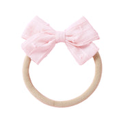 Crafted with care, this cute dotty embroidered small bow will add a touch of sweetness to your little one's look. Made from soft cotton, it ensures comfort while staying securely in place with a soft, stretchy nude headband. The delicate embroidery adds an enchanting detail, making it perfect for special occasions or everyday wear.