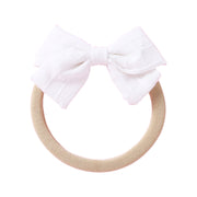 Crafted with care, this cute dotty embroidered small bow will add a touch of sweetness to your little one's look. Made from soft cotton, it ensures comfort while staying securely in place with a soft, stretchy nude headband. The delicate embroidery adds an enchanting detail, making it perfect for special occasions or everyday wear.